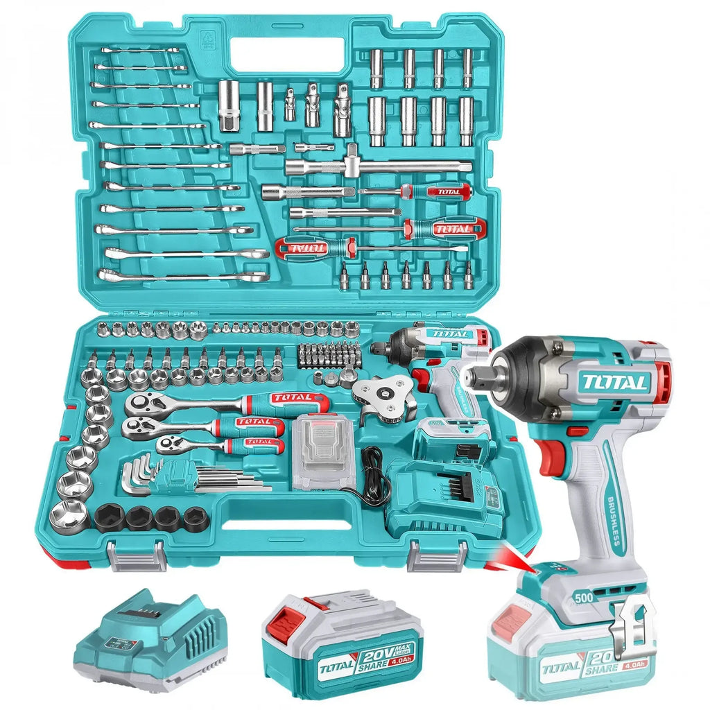 Set De 152 Piezas: Llave De Impacto Inalámbrica 20v 1/2" 500Nm + Dados + Llaves + Puntas